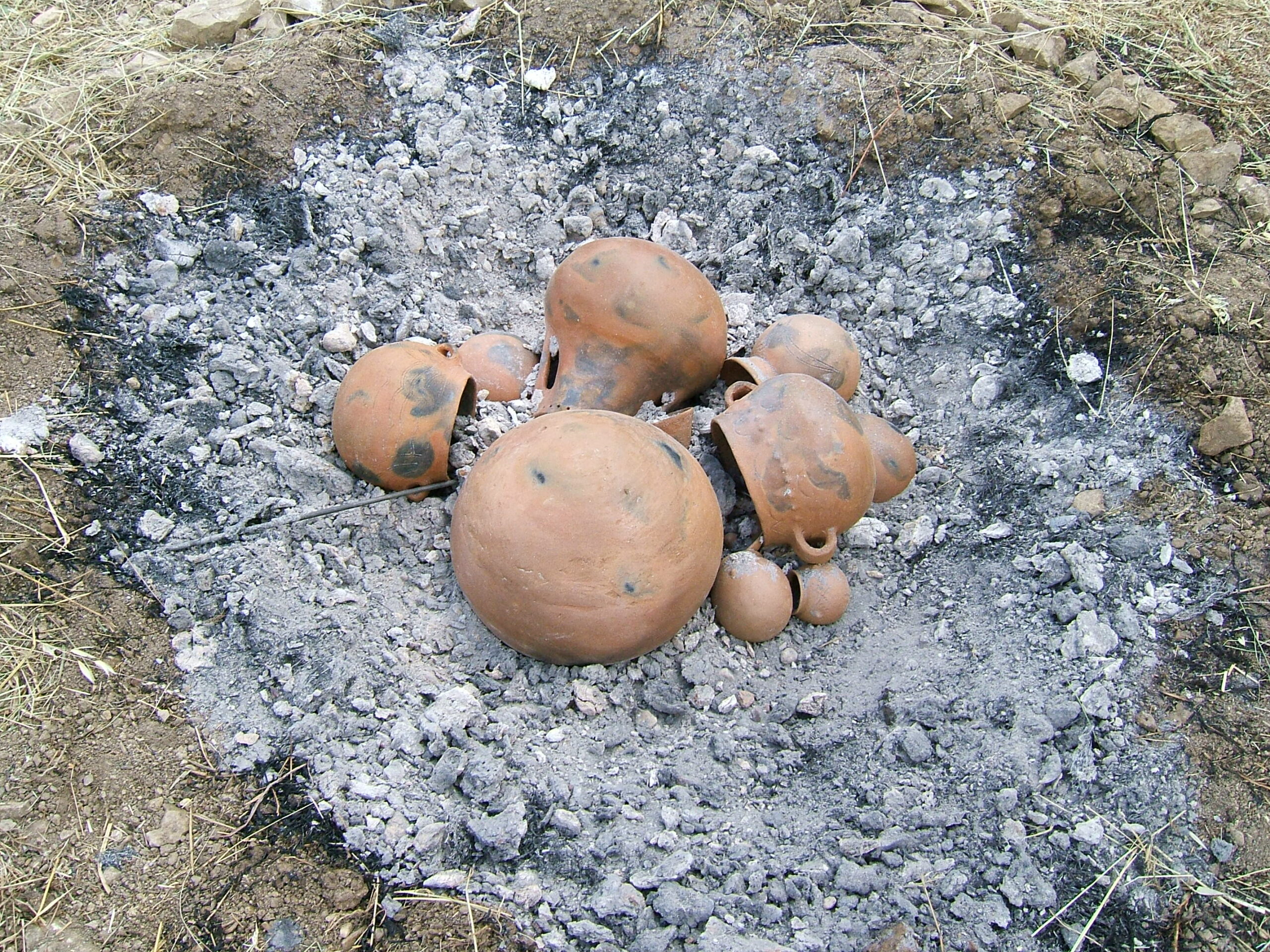 L’argile est prélevée sur site. Le montage au colombin (boudins d’argile superposés) est le plus fréquent. La cuisson des vases se fait dans des fours en meule, c’est à dire dans des fosses, sous une couverture de branchages et de terre.